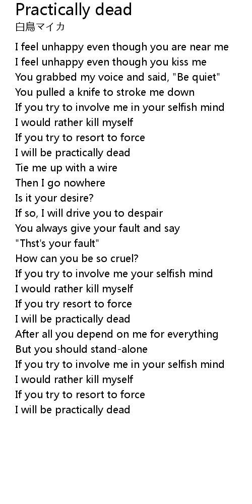 | If you try to involve me your selfish mind | |