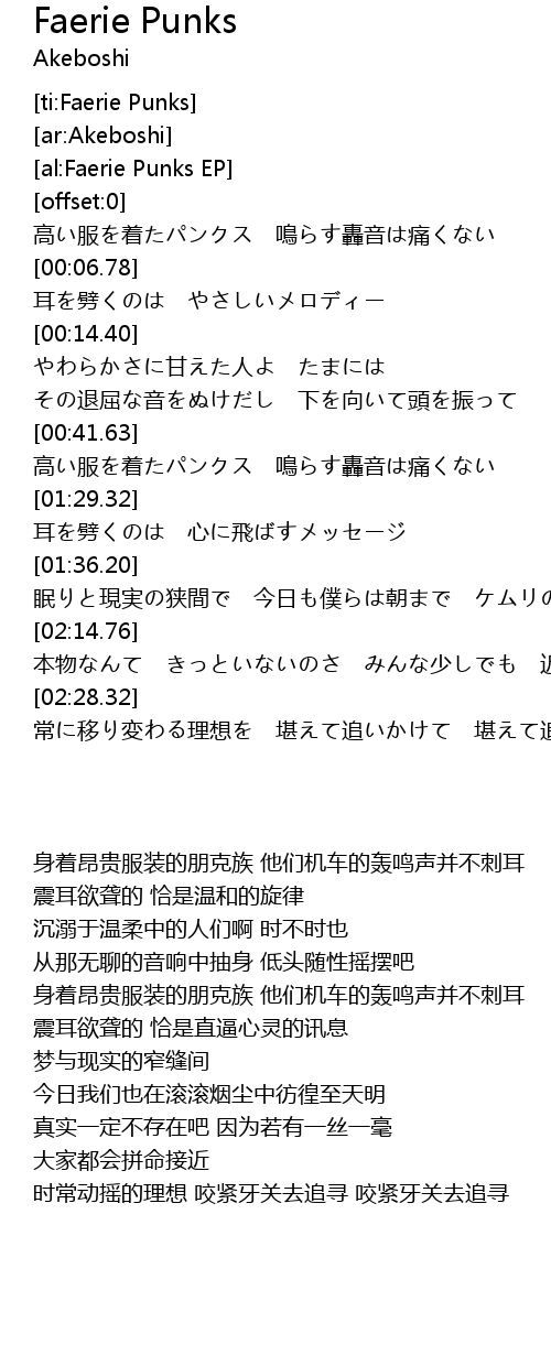 | [00:00.90] | 高い服を着たパンクス 鳴らす轟音は痛くない |