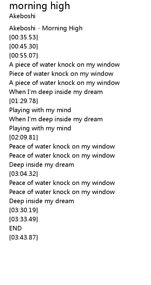 | [00:00.00] | Akeboshi - Morning High |