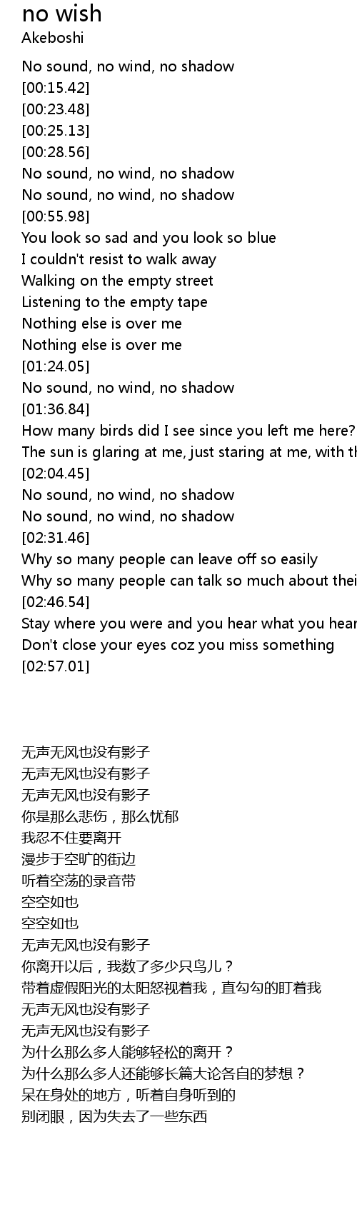| [02:56.01] | Don't close your eyes coz you miss something |