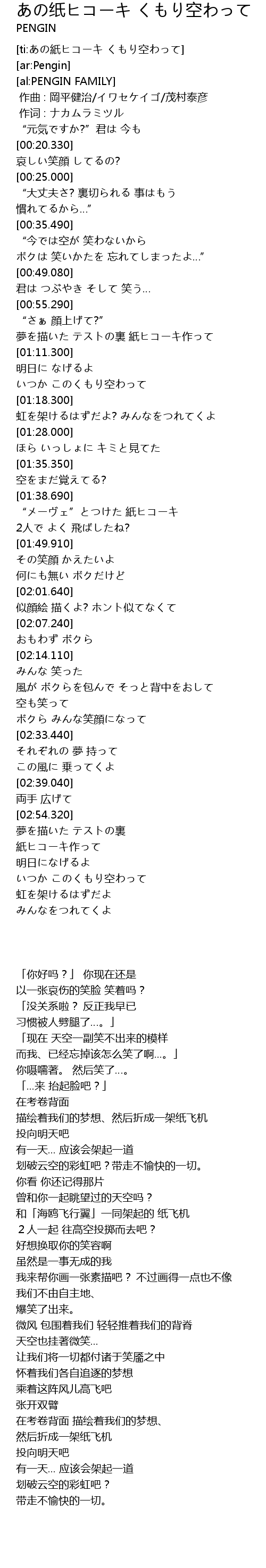 | [ti:あの紙ヒコーキ くもり空わって] | |