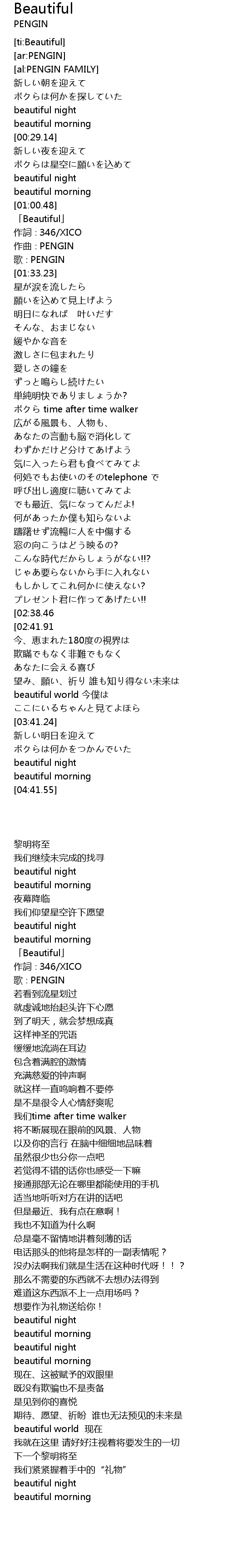 | [02:45.70][02:38.46] | beautiful night |
