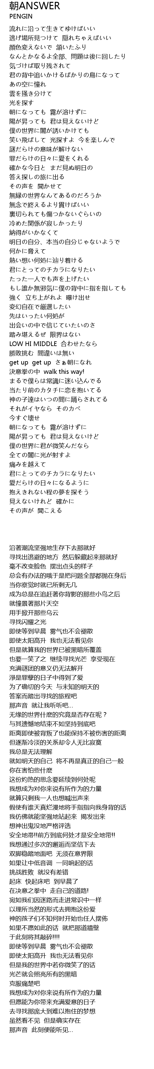 | Song | 朝ANSWER |