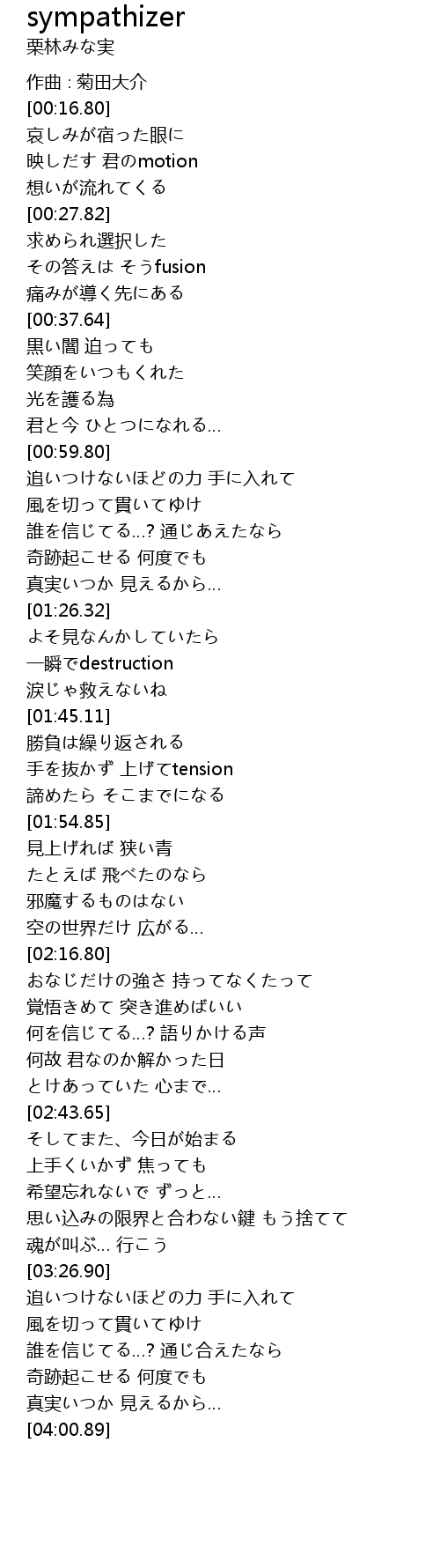 | [03:42.63] | 誰を信じてる…? 通じ合えたなら |