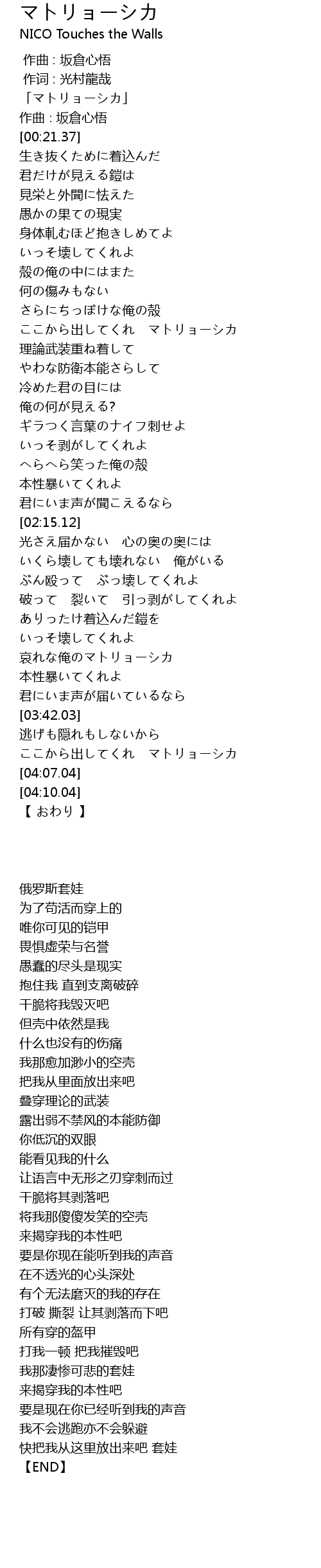| [03:20.50] | 哀れな俺のマトリョーシカ |