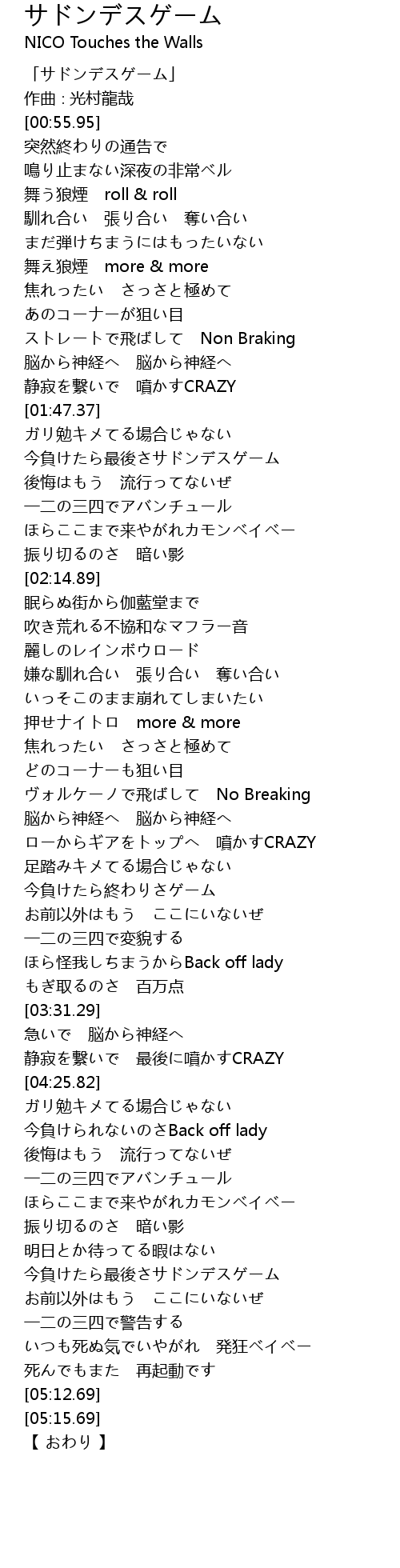 | [04:53.34] | 今負けたら最後さサドンデスゲーム |
