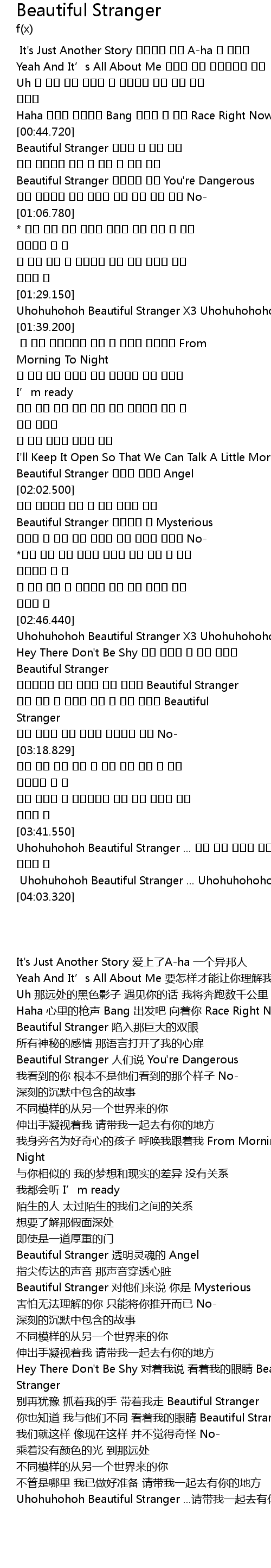 | [02:46.850] | Uhohuhohoh Beautiful Stranger X3 Uhohuhohohoh |