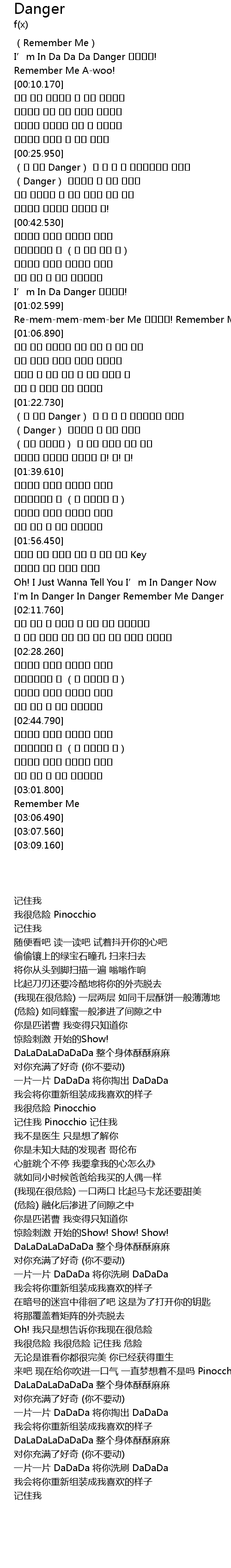 | [00:02.540] | I’m In Da Da Da Danger 피노키오! |