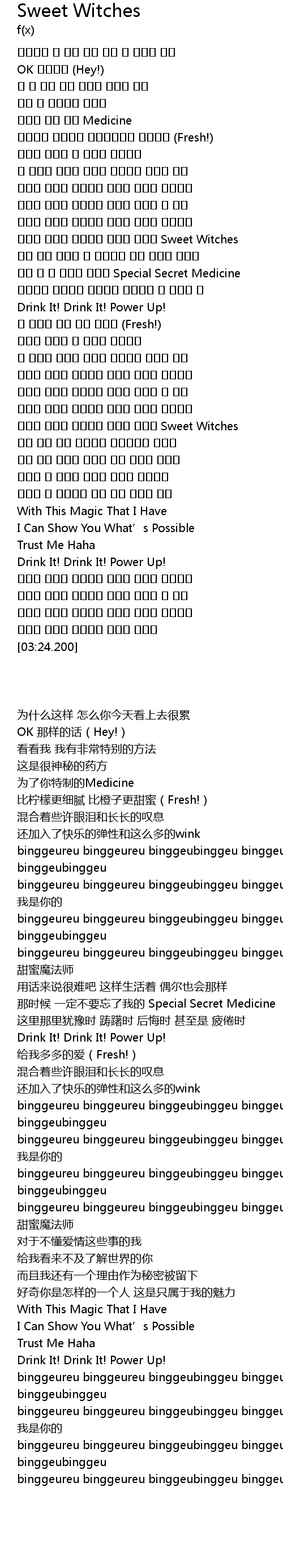 | [02:19.740] | 빙그르 빙그르 빙글빙글 빙그르 빙그르 Sweet Witches |