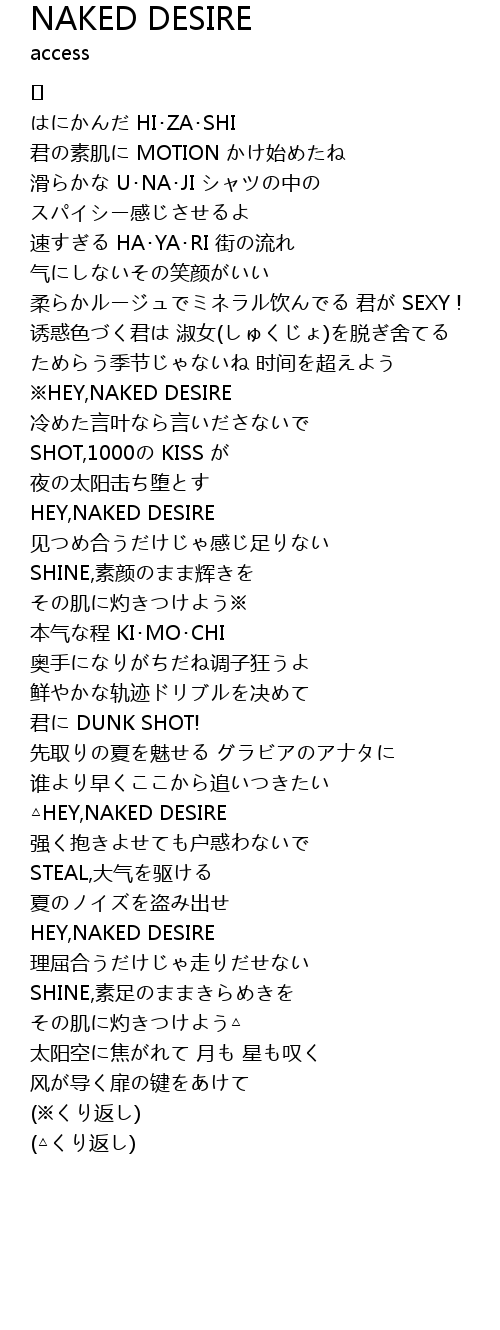 | Song | NAKED DESIRE |