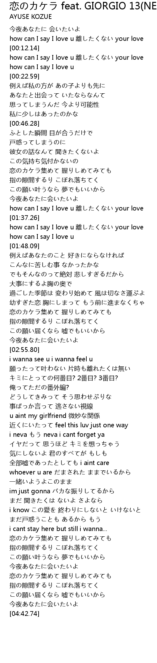 | [00:04.41] | how can I say I love u 離したくない your love |