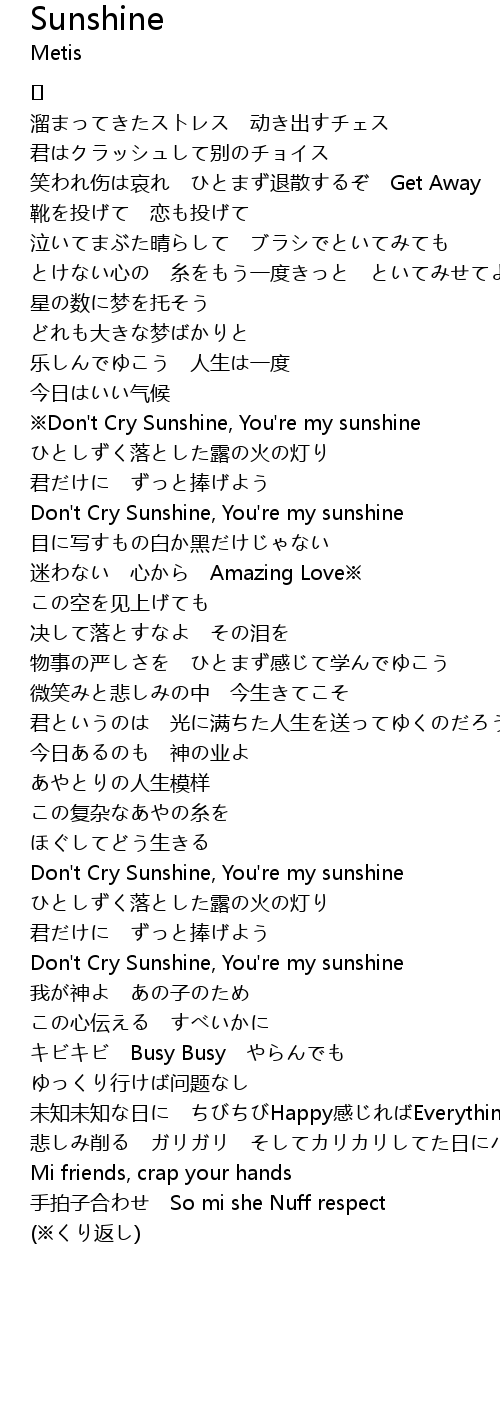 | ※Don't Cry Sunshine, You're my sunshine | |
