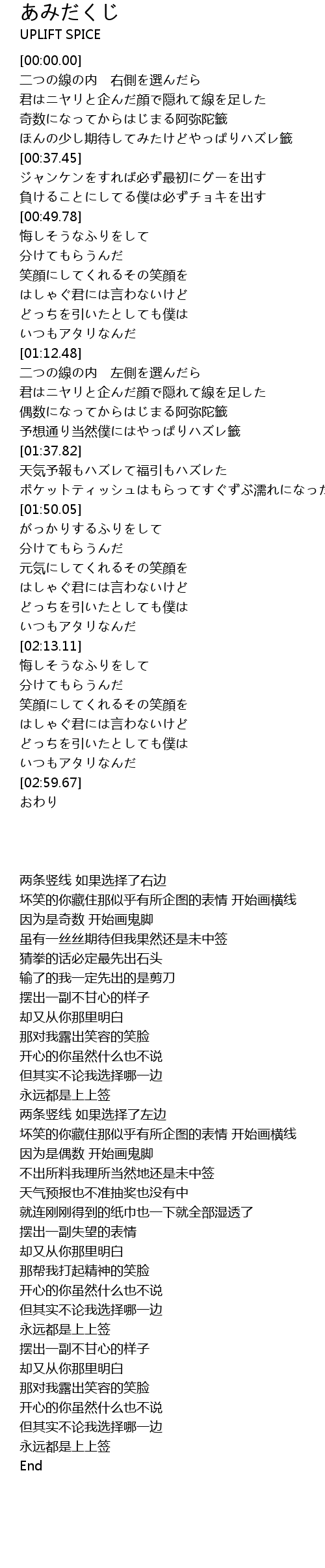 | [00:25.65] | 奇数になってからはじまる阿弥陀籤 |