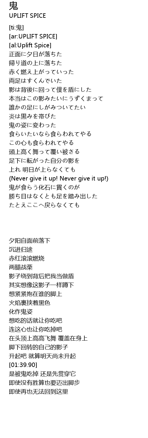 | [01:39.90] | (Never give it up! Never give it up!) |