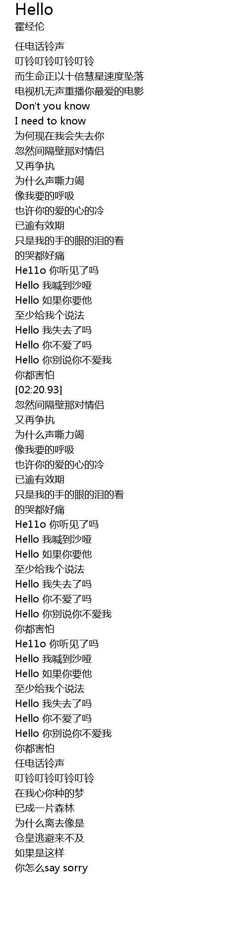 | [03:58.43] | Hello nǐ bù ài le ma |