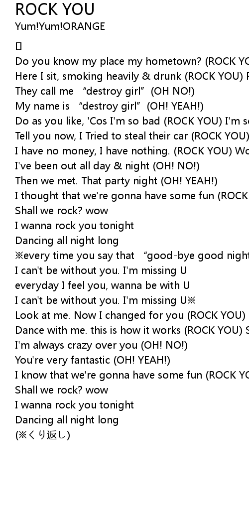 | Do as you like, ' Cos I' m so bad ROCK YOU I' m so young wow | |