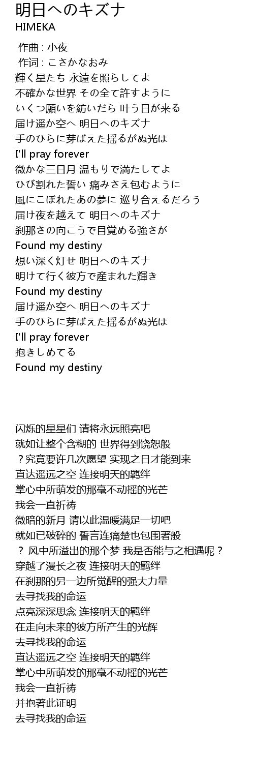 | [02:28.490] | 届け夜を越えて 明日へのキズナ |