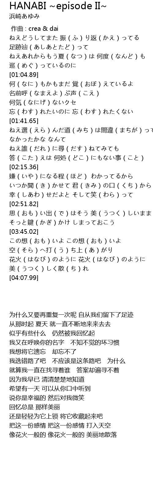 | [03:58.90] | 花火(はなび)のように 花火(はなび)のように 美(うつく)しく散(ち)れ |