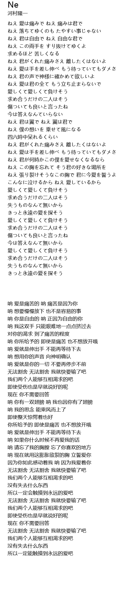 | [00:13.040] | ねえ 愛は痛みで ねえ 痛みは君で |