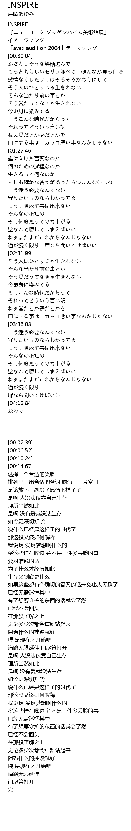 | [00:14.67] | 『avex audition 2004』テーマソング |