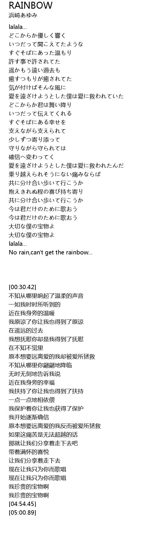 | [05:00.89] | No rain,can't get the rainbow… |