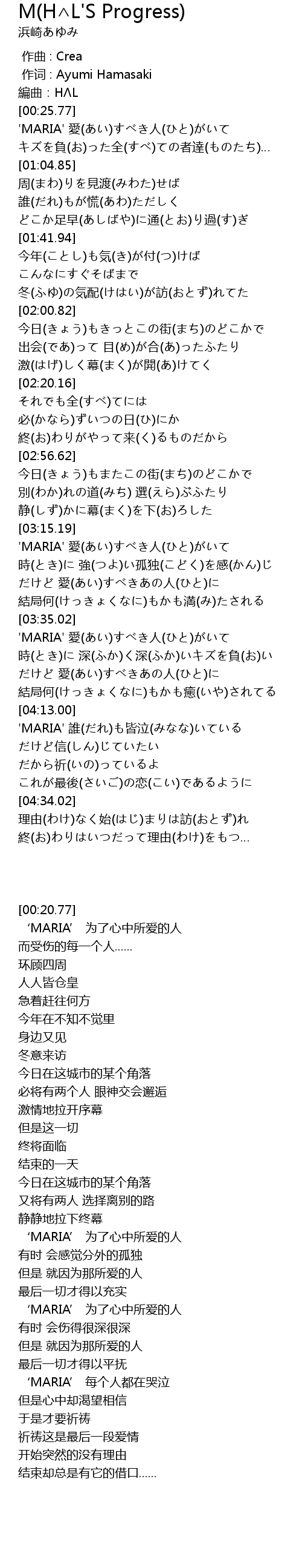 | [00:01.00] | 作词 : Ayumi Hamasaki |