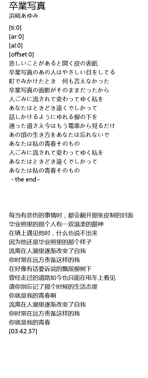 | [00:38.55] | 卒業写真のあの人はやさしい目をしてる |