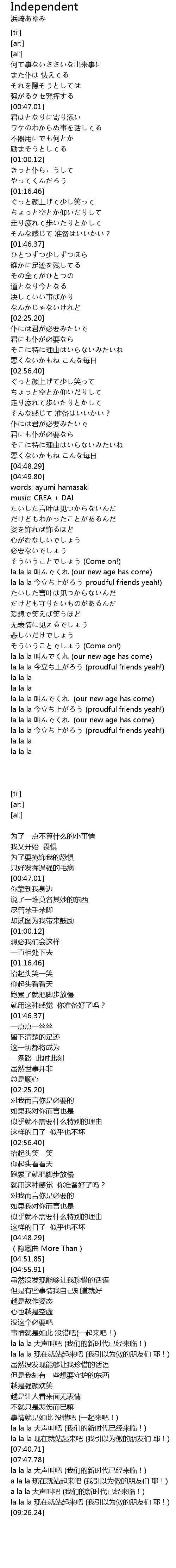 | [04:51.85] | words: ayumi hamasaki |