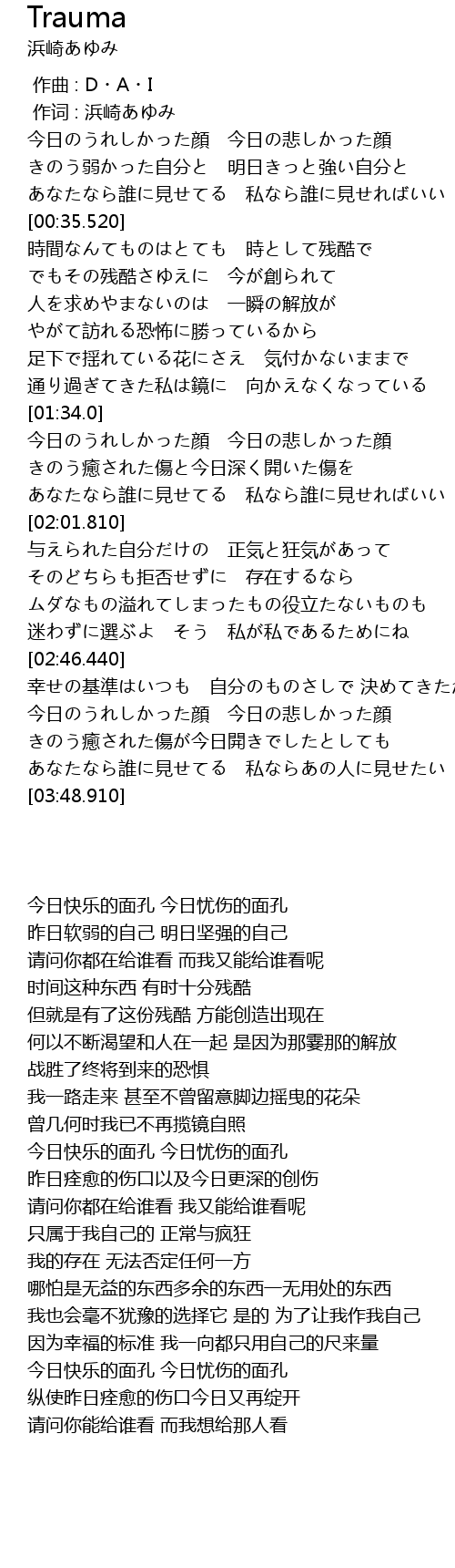 | [00:01.00] | 作词 : 浜崎あゆみ |