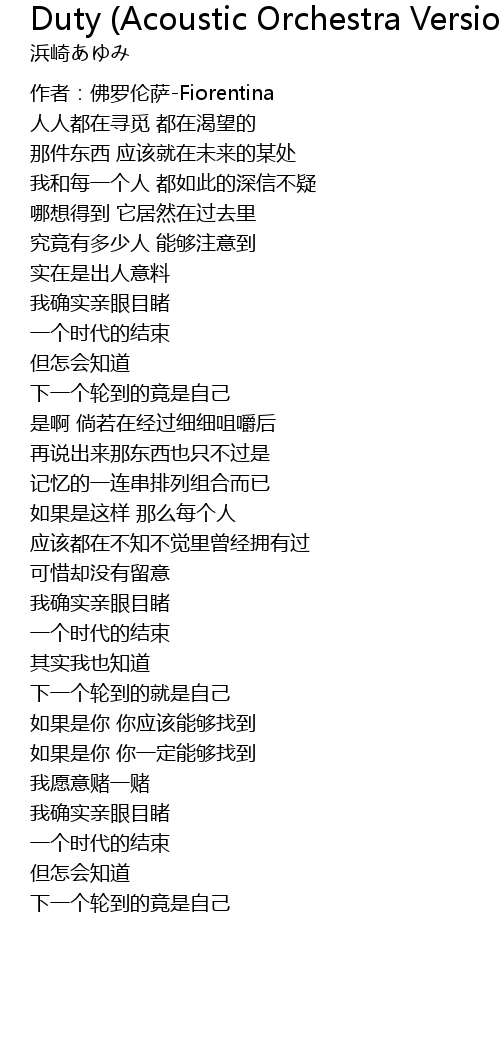 | Song | Duty (Acoustic Orchestra Version) |
