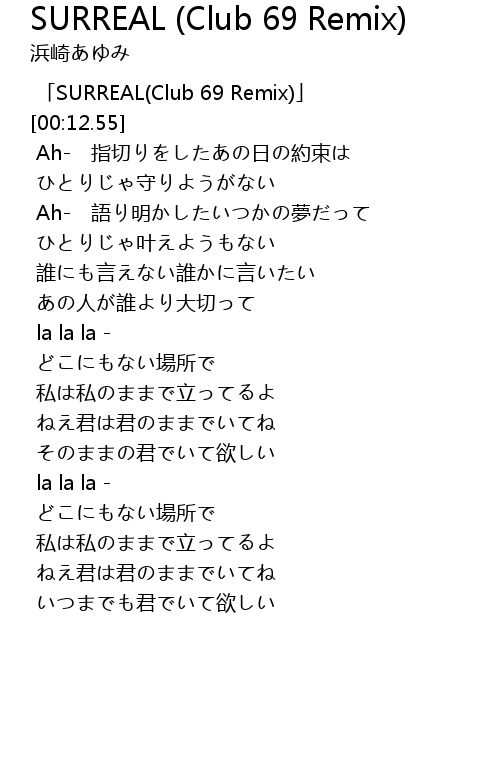 | [00:01.16] | 「SURREAL(Club 69 Remix)」 |
