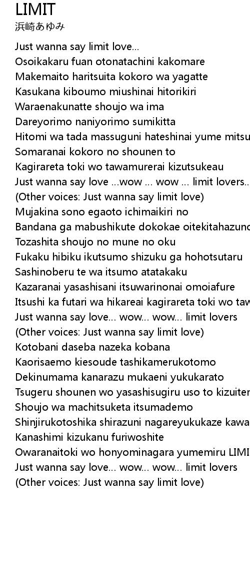 | Other voices: Just wanna say limit love | |
