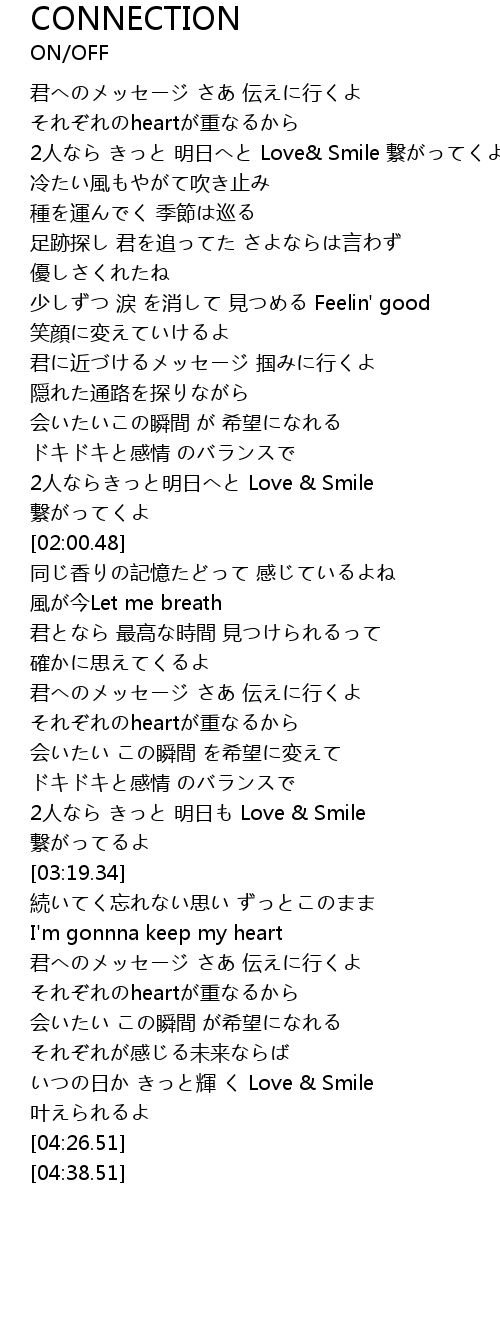 | [03:07.76] | 2人なら きっと 明日も Love & Smile |