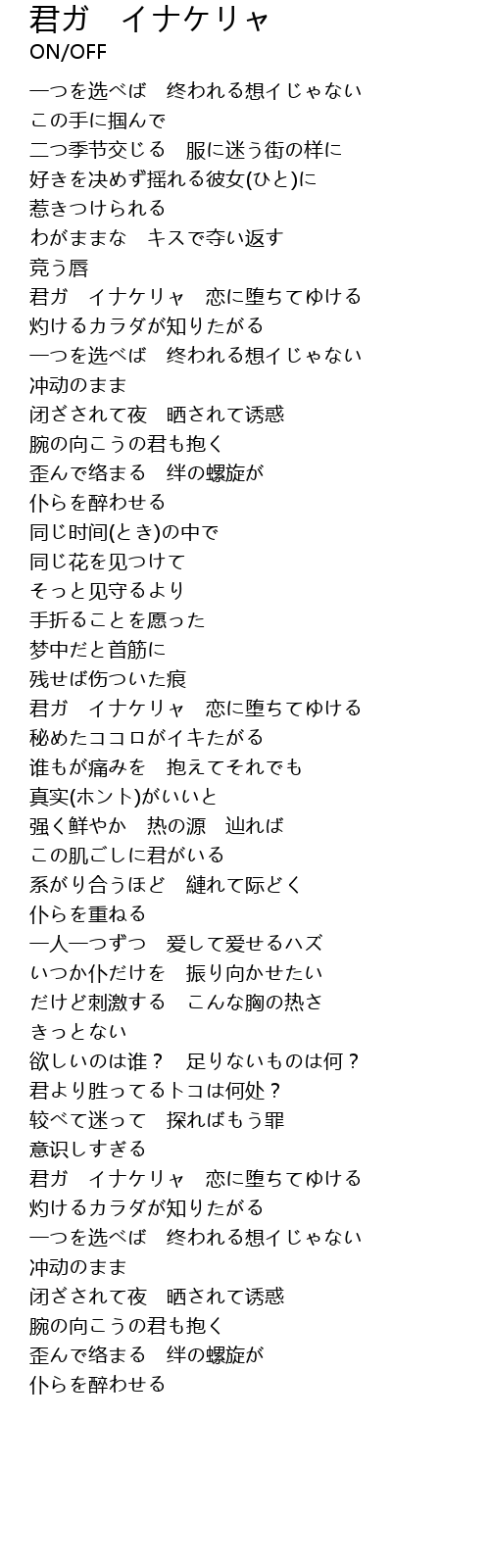 | Song | 君ガ イナケリャ |