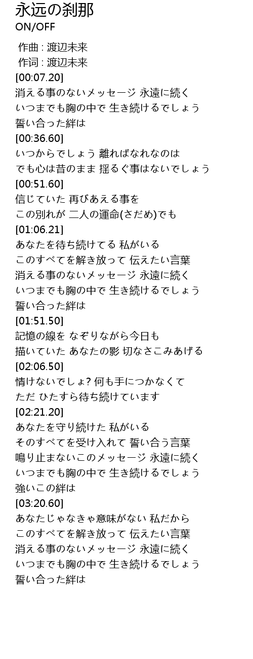| [03:36.47] | 消える事のないメッセージ 永遠に続く |