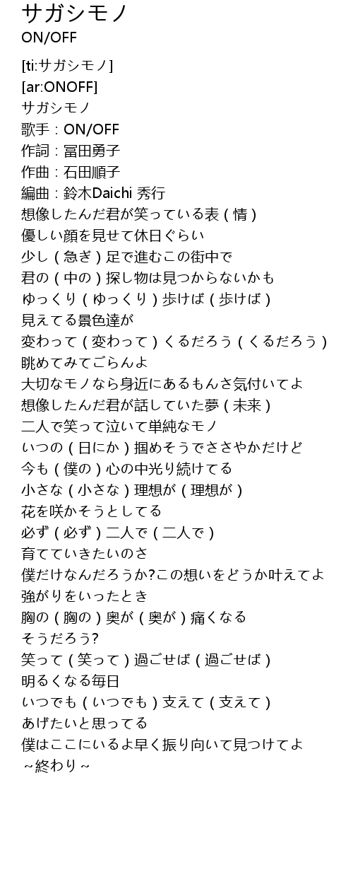 | [00:01.86] | 歌手:ON/OFF |