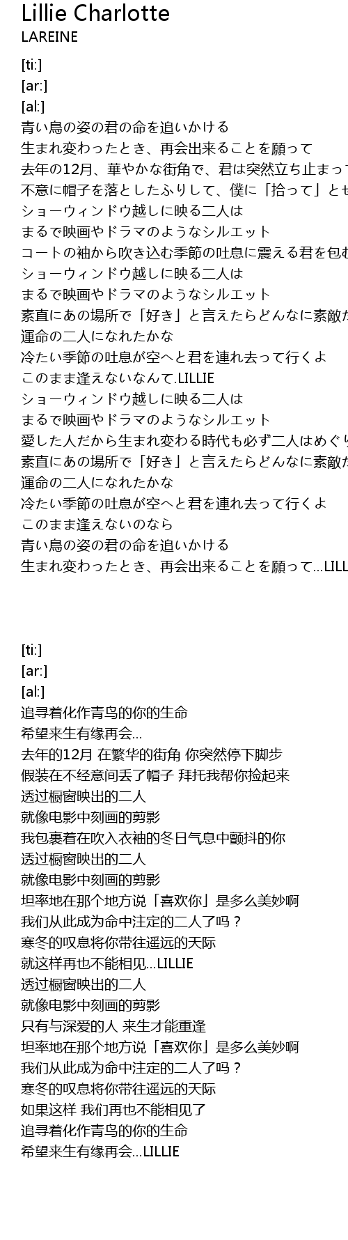 | [04:19.58] | 生まれ変わったとき、再会出来ることを願って...LILLIE |