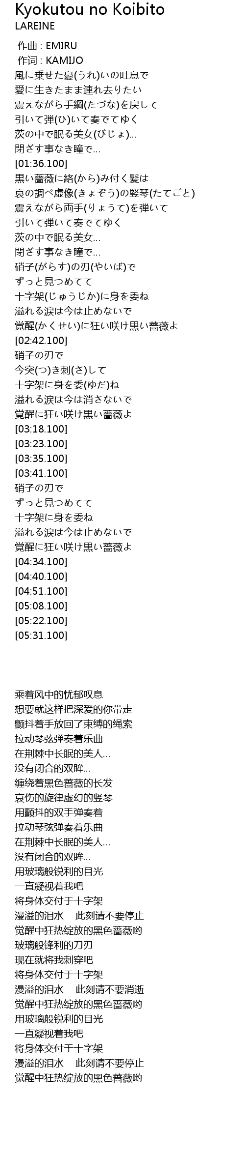 | [01:42.100] | 黒い薔薇に絡(から)み付く髪は |
