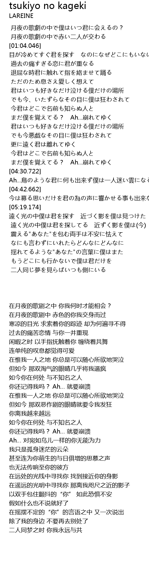 | [00:36.340] | 月夜の歌劇の中で僕はいつ君に会えるの? |
