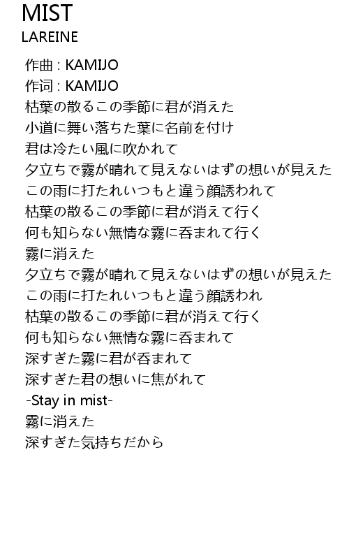 | [00:00.393] | 枯葉の散るこの季節に君が消えた |