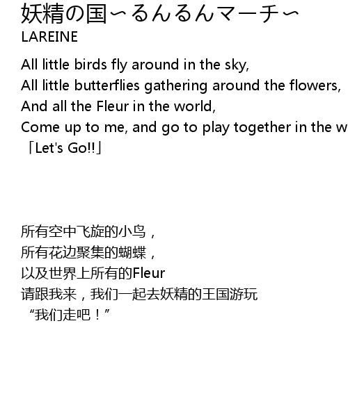 | Song | 妖精の国〜るんるんマーチ〜 |
