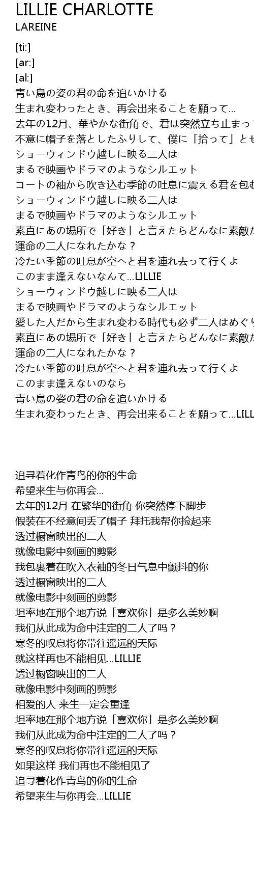 | [04:02.49] | 生まれ変わったとき、再会出来ることを願って...LILLIE |