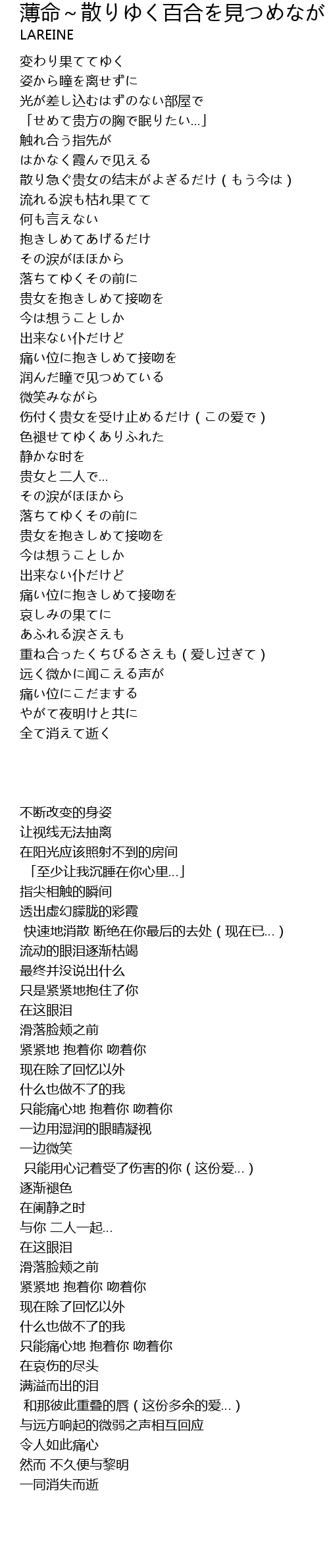 | Song | 薄命~散りゆく百合を見つめながら~ |