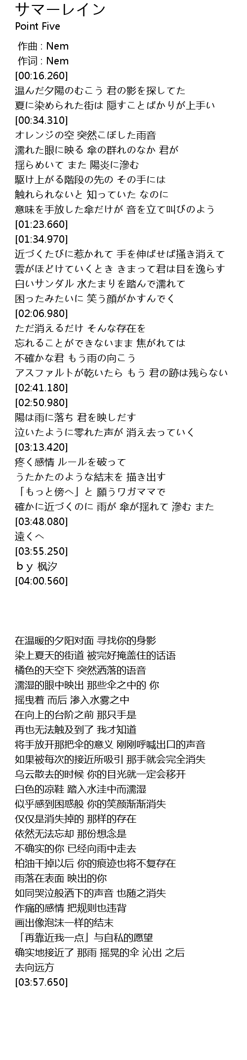 | [02:55.730] | 陽は雨に落ち 君を映しだす |