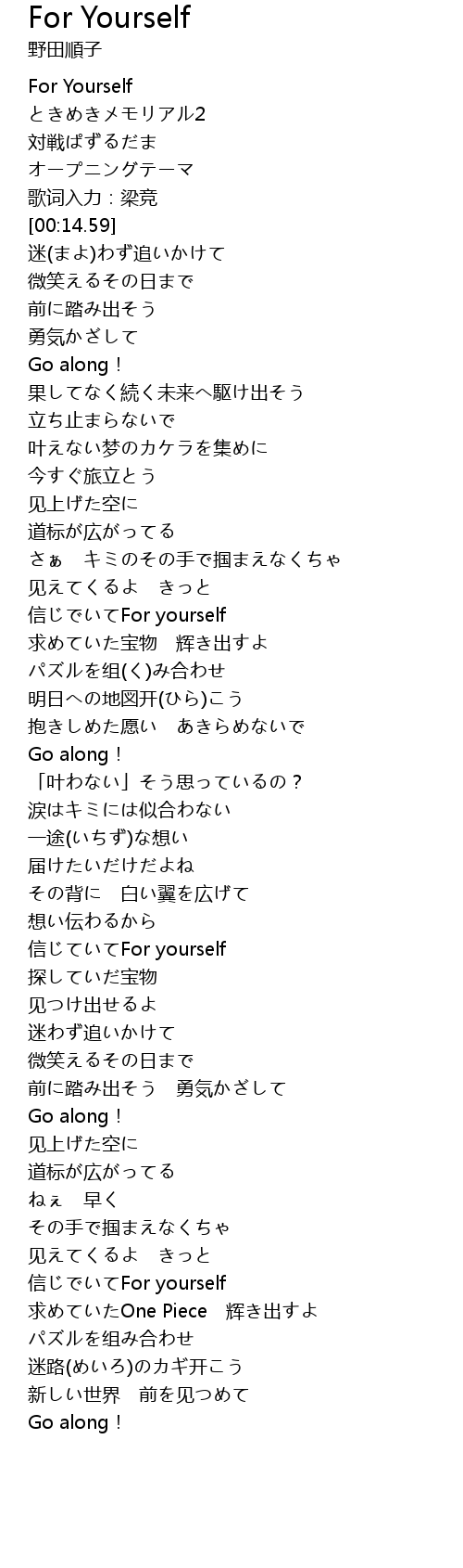 | [00:00.59] | For Yourself |