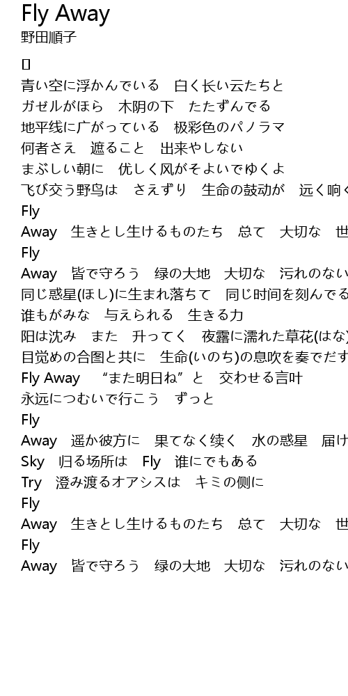| Fly Away 皆で守ろう 绿の大地 大切な 污れのない 明日へ | |