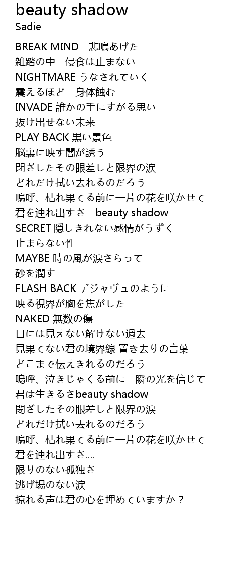 | [01:17.104] | 君を連れ出すさ beauty shadow |