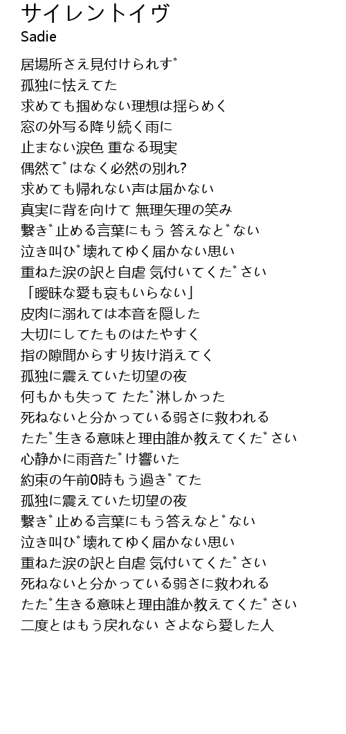 | [03:51.144] | 重ねた涙の訳と自虐 気付いてください |