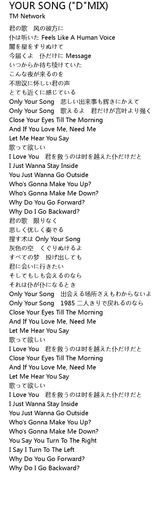 | [01:17.20] | Only Your Song 歌えるよ 君だけが言叶より强く |