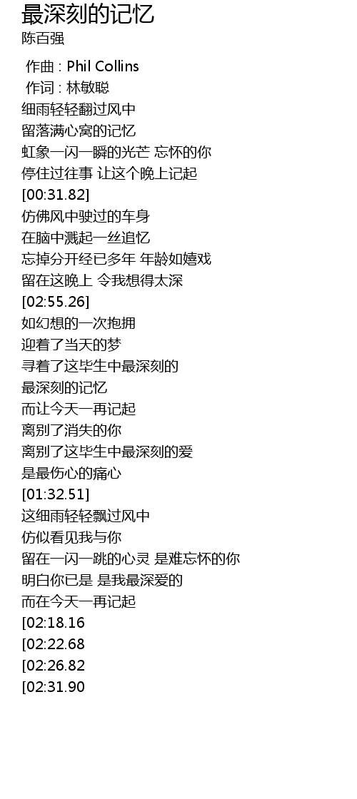 | [00:00.00] | zuo qu : Phil Collins |